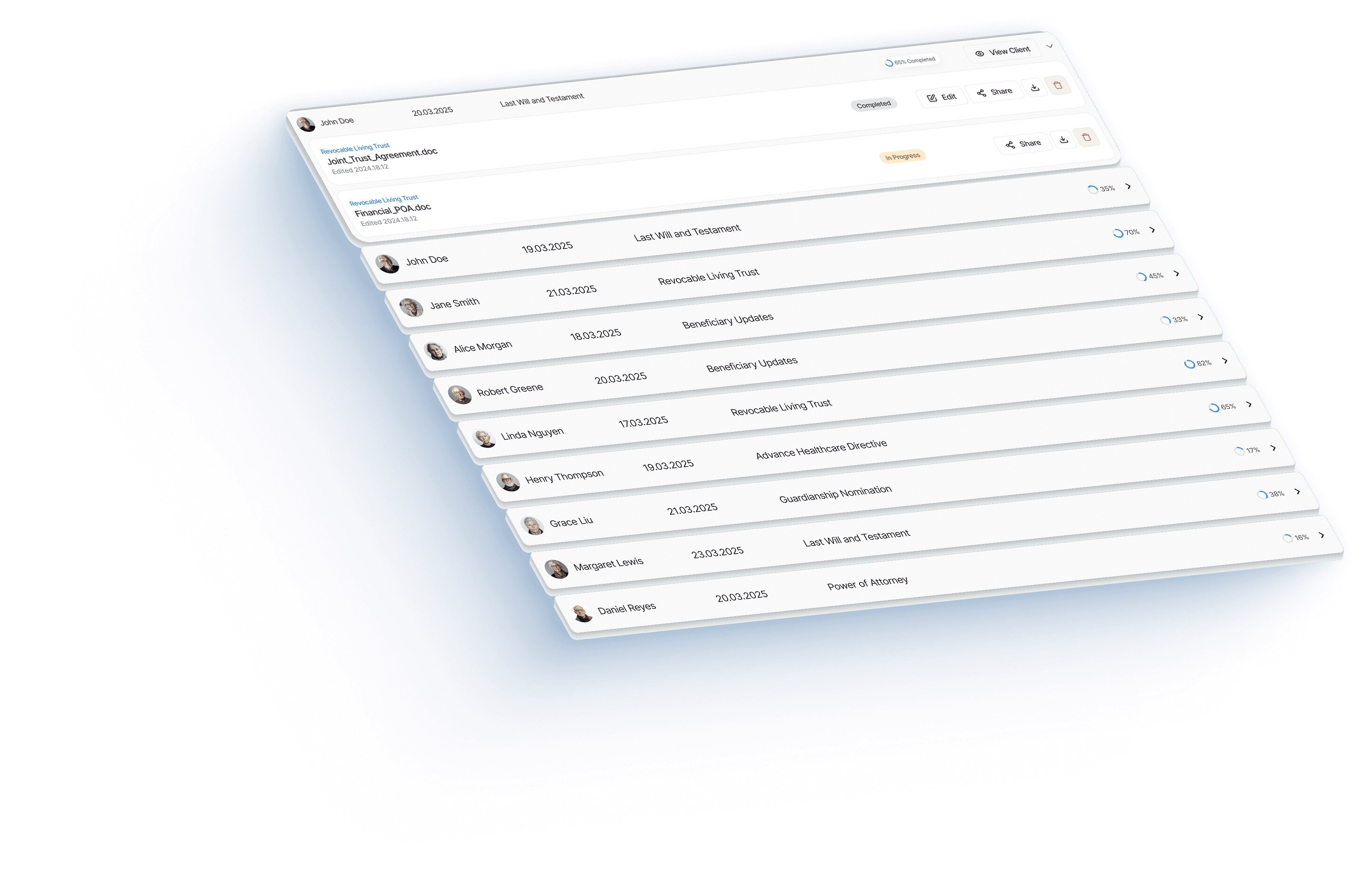 As many as you need. Our dashboard is designed to let you stay on top of every case and track completion across all your matters in one clear view.
