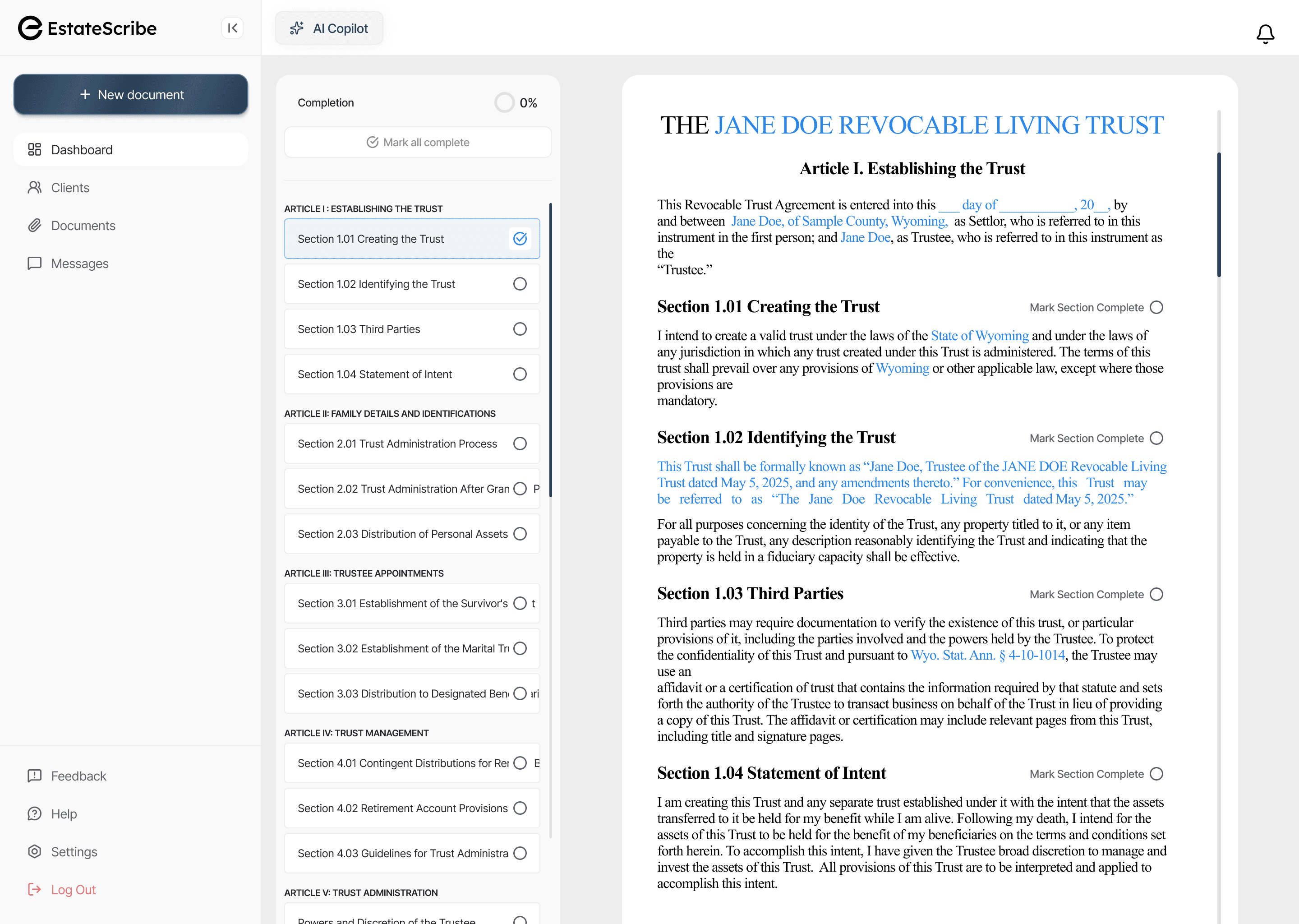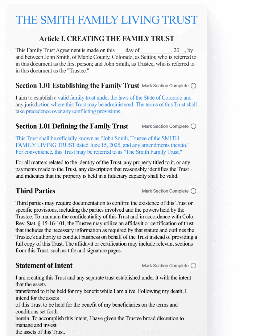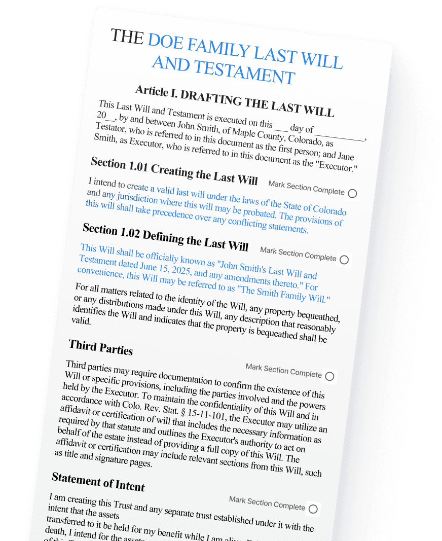 Instantly generate wills, trusts, and ancillary documents from your structured intake data.